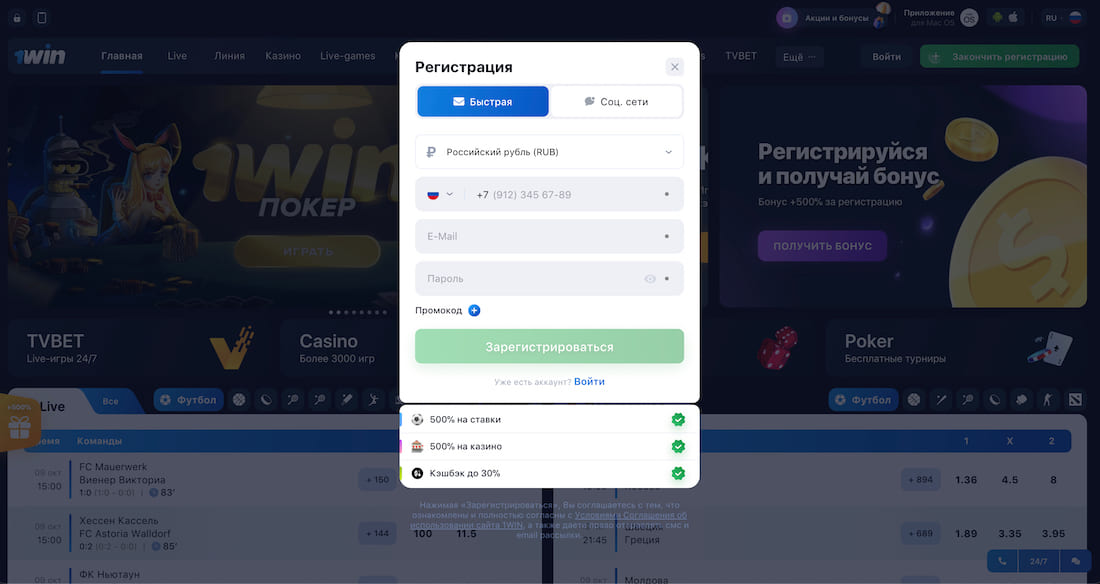 Для начала работы с 1 Вин необходимо пройти простую процедуру входа или регистрации.